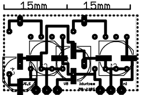 Kupferseite, eher unspektakulär. Für die Skeptiker des Tonertransferverfahrens zum Ätzen - die locker erreichten Stukturen, z.B. der Schrift, reichen für Hobbyaufgabe völlig.
