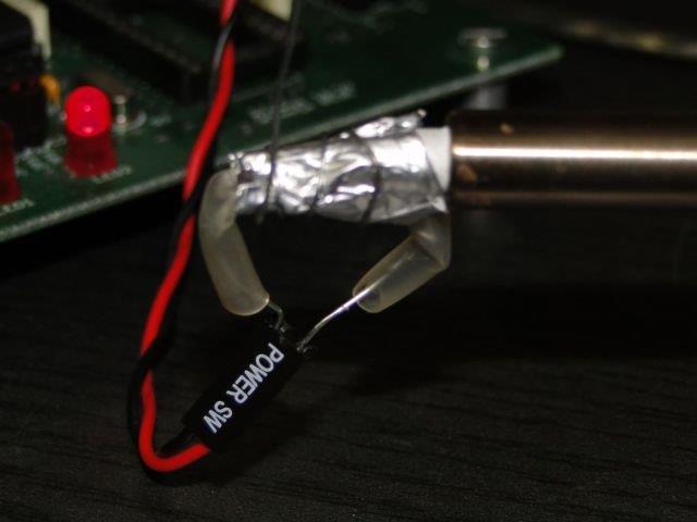 Später wurde dieser Silikonschlauch mit Hilfe einiger Windungen Alu-Folie anstelle des originalen Bimetallschalters angebracht.