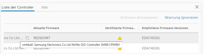 Bei den 970er Evos wird bei neueren vSAN Releases evtl. die Firmware angemeckert.