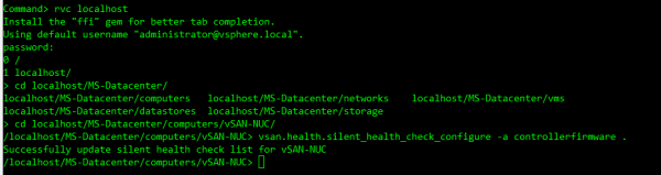 vsan.health.silent_health_check_configure -a controllerfirmware .