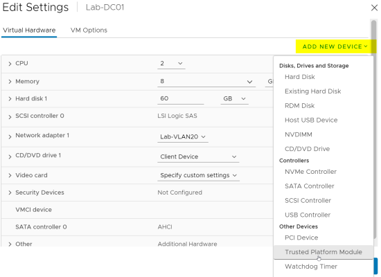 Da das Thema immer mehr nachgefragt wird, hier eine kurze Übersicht, wie man seine VMware Umgebung und VM für UEFI, Secure Boot und Virtual Based Securety (VBS) umstellt.